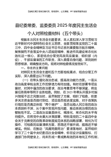 县纪委常委、监委委员2025年度民主生活会个人对照检查材料(五个带头).docx