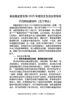 县金融监管支局2025年度民主生活会领导班子对照检查材料(五个带头).docx