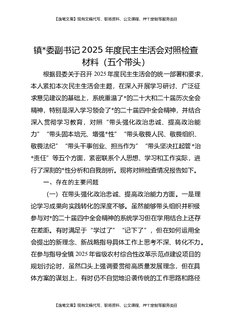 镇党委副书记2025年度民主生活会对照检查材料(五个带头).docx
