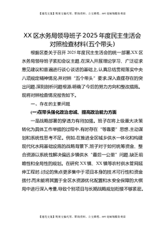 XX区水务局领导班子2025年度民主生活会对照检查材料(五个带头).docx