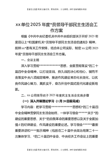 XX单位2025年度党员领导干部民主生活会工作方案.docx