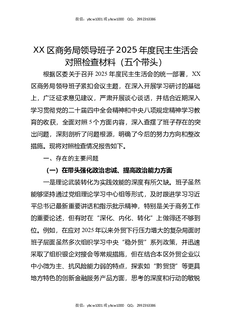 XX区商务局领导班子2025年度民主生活会对照检查材料(五个带头).docx