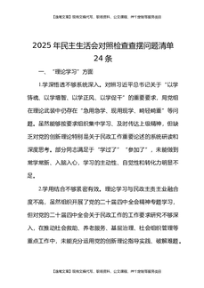 2025年民主生活会对照检查查摆问题清单24条.docx