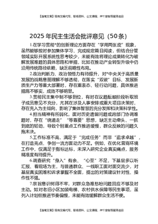 2025年民主生活会批评意见(50条).docx