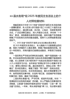 XX县水务局党组2025年度民主生活会上的个人对照检查材料.docx