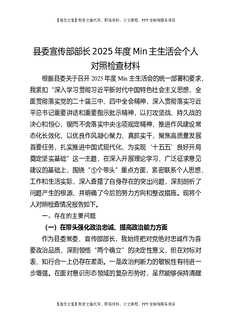 县委宣传部部长2025年度民主生活会个人对照检查材料.docx