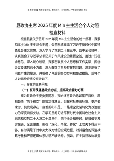 县政协主席2025年度民主生活会个人对照检查材料.docx