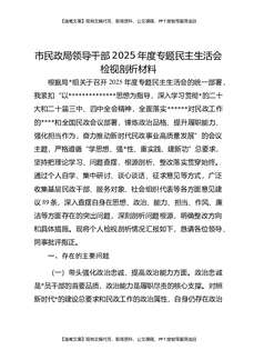 市民政局领导干部2025年度专题民主生活会检视剖析材料.docx
