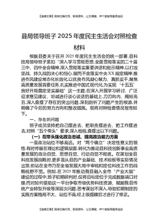 县局领导班子2025年度民主生活会对照检查材料.docx
