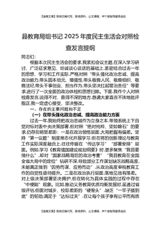县教育局党组书记2025年度民主生活会对照检查发言提纲.docx