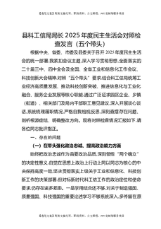 县科工信局局长2025年度民主生活会对照检查发言(五个带头).docx