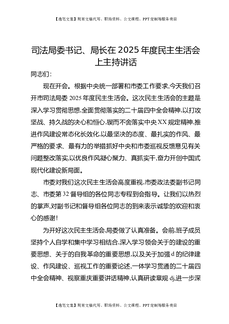 司法局党委书记、局长在2025年度民主生活会上主持讲话.docx