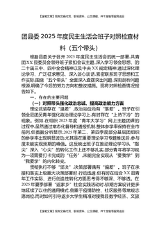团县委2025年度民主生活会班子对照检查材料(五个带头).docx