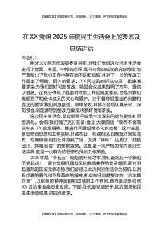在XX党组2025年度民主生活会上的表态及总结讲话.docx