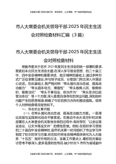 市人大常委会机关领导干部2025年民主生活会对照检查材料汇编(3篇).docx