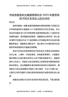 市政务服务和大数据局局长在2025年度领导班子民主生活会上的主持词.docx