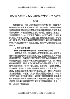 退役军人系统2025年度民主生活会个人对照检查.docx