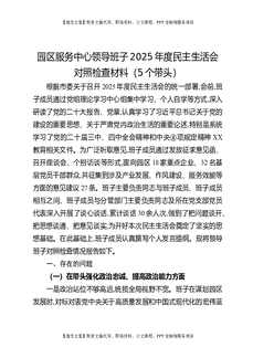园区服务中心领导班子2025年度民主生活会对照检查材料(5个带头).docx