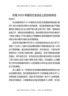 在局2025年度民主生活会上的总结讲话.docx