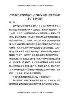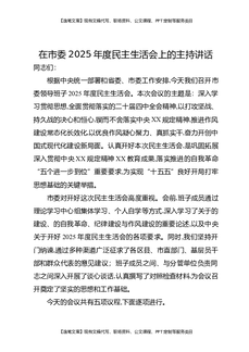 在市委常委班子2025年度民主生活会上的主持词和讲话.docx