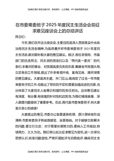 在市委常委班子2025年度民主生活会会前征求意见座谈会上的总结讲话.docx