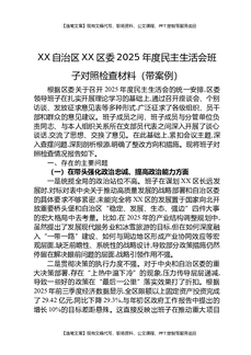 XX自治区XX区委2025年度民主生活会班子对照检查材料(带案例).docx