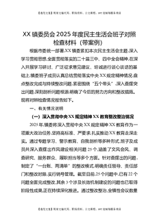 XX镇委员会2025年度民主生活会班子对照检查材料(带案例).docx