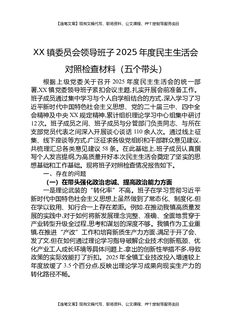 XX镇委员会领导班子2025年度民主生活会对照检查材料(五个带头).docx