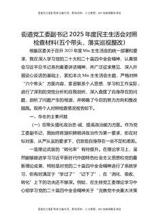 街道党工委2025年度民主生活会班子对照检查材料(五个带头).docx
