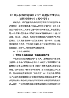 XX镇人民政府副镇长2025年度民主生活会对照检查材料(五个带头).docx