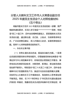 分管人大教科文卫工作市人大常委会副主任2025年度民主生活会个人对照检查材料(五个带头).docx