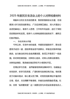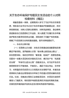 关于生态环境保护专题民主生活会的个人对照检查材料(精品).docx