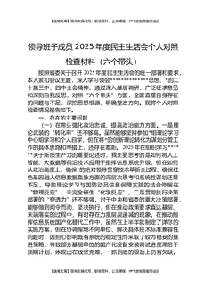 领导班子成员2025年度民主生活会个人对照检查材料(六个带头).docx