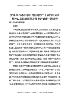 党课:坚定不移学习贯彻党的二十届四中全会精神以医院高质量发展推进健康中国建设.docx