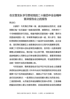 在交警支队学习贯彻党的二十届四中全会精神宣讲报告会上的报告.docx
