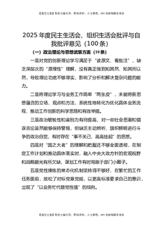 2025年度民主生活会、组织生活会批评与自我批评意见(100条).docx