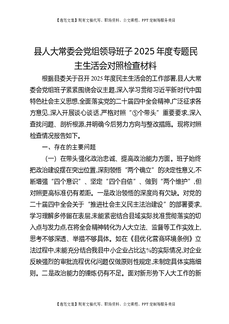 县人大常委会党组领导班子2025年度专题民主生活会对照检查材料.docx