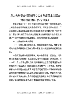 县人大常委会领导班子2025年度民主生活会对照检查材料(5个带头).docx