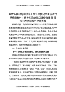 县农业农村局党组班子2025年度民主生活会对照检查材料:铸牢政治忠诚以此修身律己,勇担三农使命奋力攻坚克难.docx