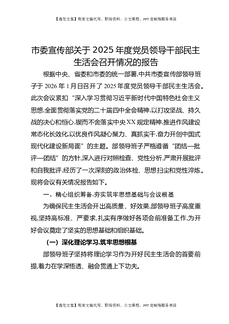 市委宣传部关于2025年度党员领导干部民主生活会召开情况的报告.docx
