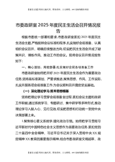 市委政研室2025年度民主生活会召开情况报告.docx