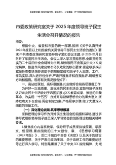 市委政策研究室关于2025年度领导班子民主生活会召开情况的报告.docx