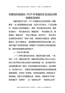 市委组织部部长2025年专题民主生活会对照检查发言材料.docx