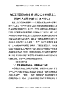 市政工程管理处党支部书记2025年度民主生活会个人对照检查材料(5个带头).docx