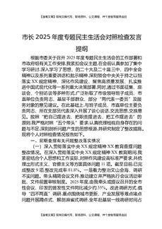 市长2025年度专题民主生活会对照检查发言提纲.docx