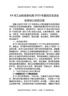 XX市工业和信息化局2025年度民主生活会会前谈心谈话记录.docx