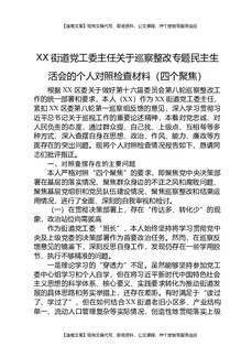 XX街道党工委主任关于巡察整改专题民主生活会的个人对照检查材料(四个聚焦).docx