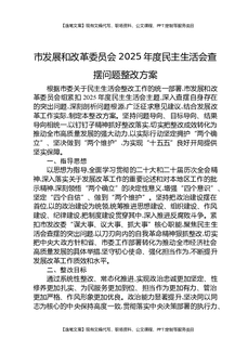 市发展和改革委员会2025年度民主生活会查摆问题整改方案.docx