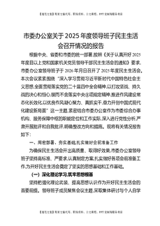 市委办公室关于2025年度领导班子民主生活会召开情况的报告.docx