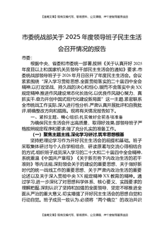 市委统战部关于2025年度领导班子民主生活会召开情况的报告.docx